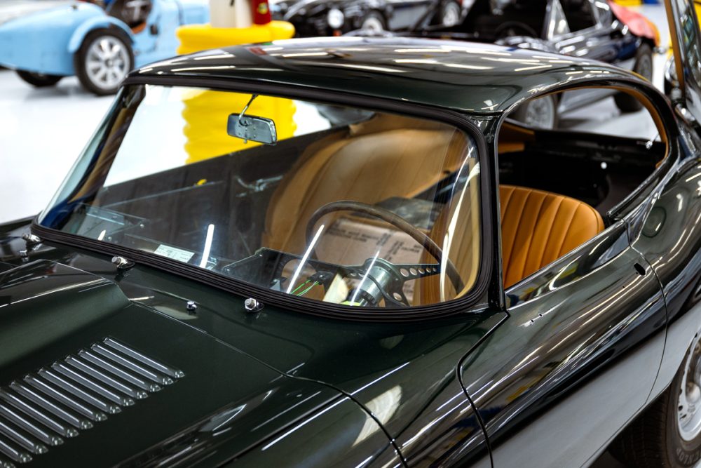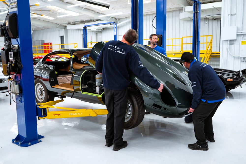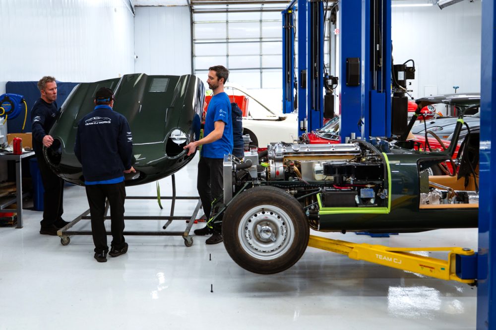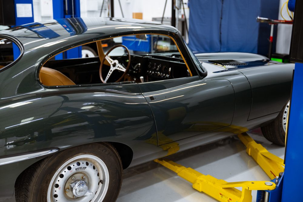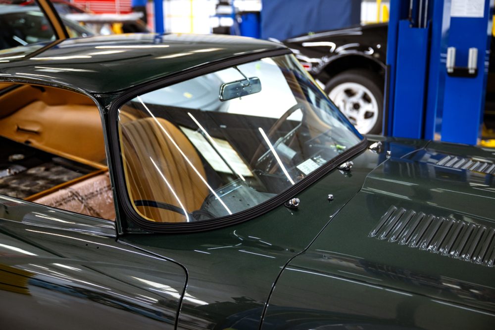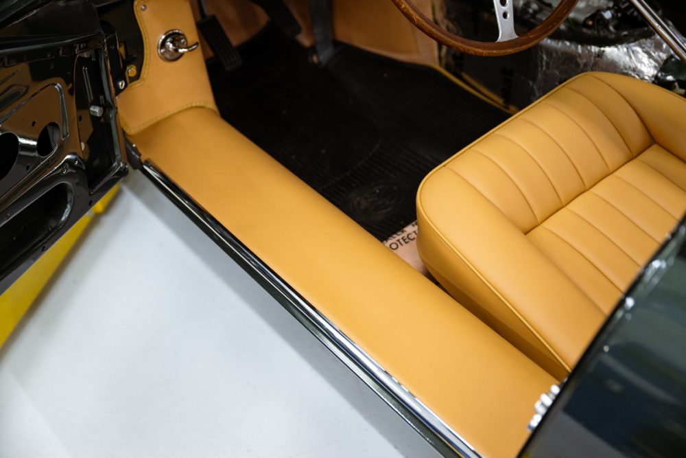 Total restoration with a full range of Team CJ performance and reliability upgrades, including a 4.7L Stage Two engine, fuel injection, five-speed and upgraded cooling, ignition, suspension and brakes. The car will be finished in Opalescent Dark Green with dark tan Suffolk & Turley hides and will ride on our exclusive Team CJ Borrani wire wheels.