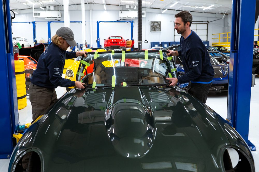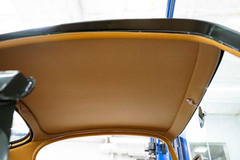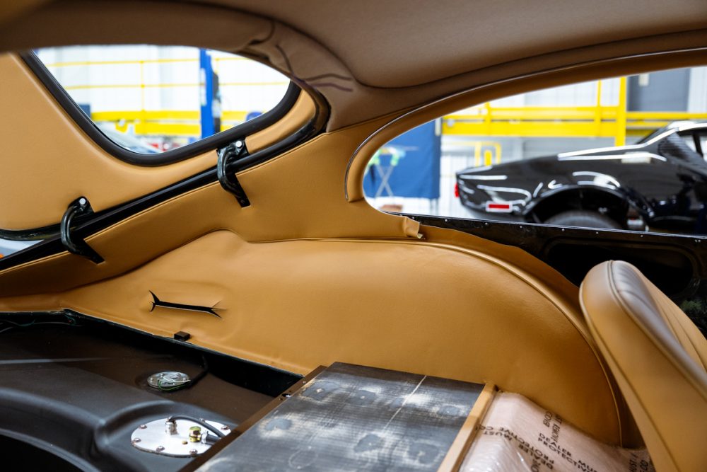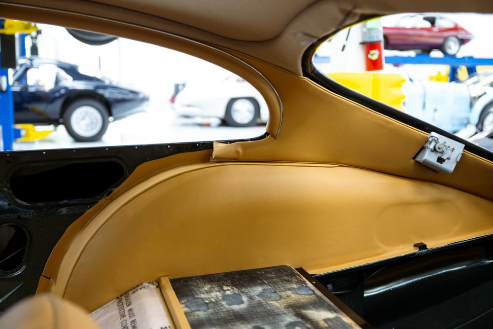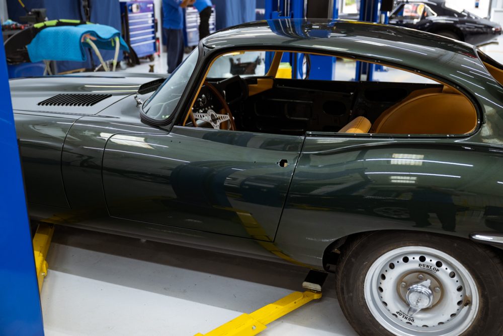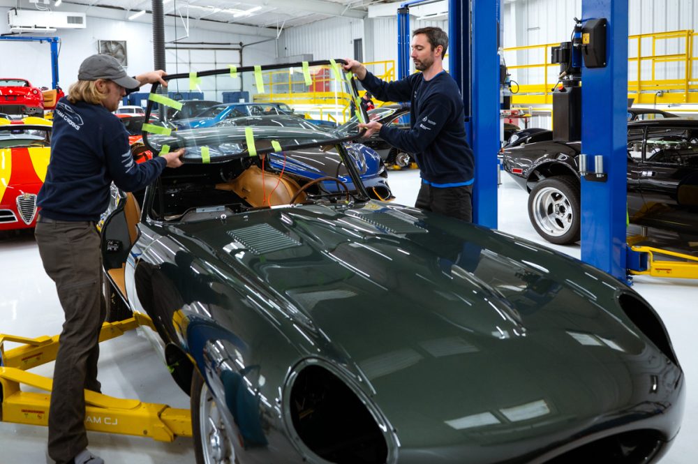 Total restoration with a full range of Team CJ performance and reliability upgrades, including a 4.7L Stage Two engine, fuel injection, five-speed and upgraded cooling, ignition, suspension and brakes. The car will be finished in Opalescent Dark Green with dark tan Suffolk & Turley hides and will ride on our exclusive Team CJ Borrani wire wheels.