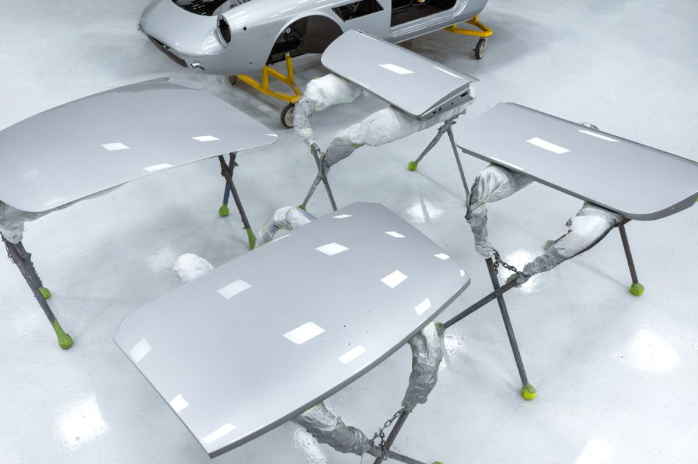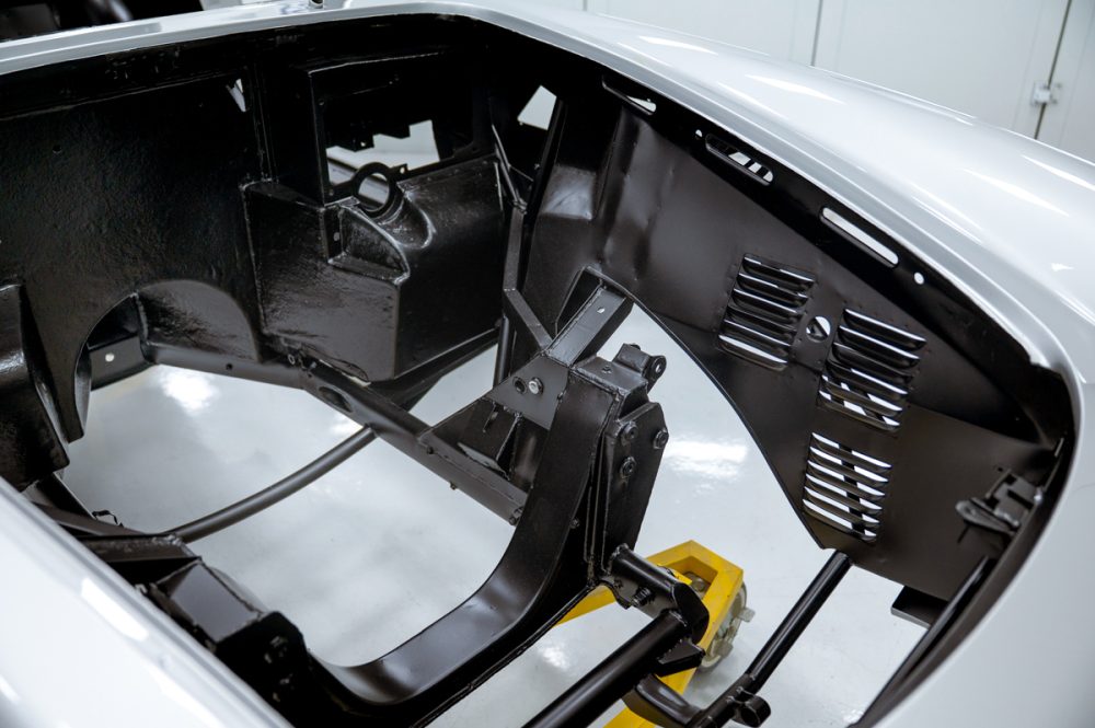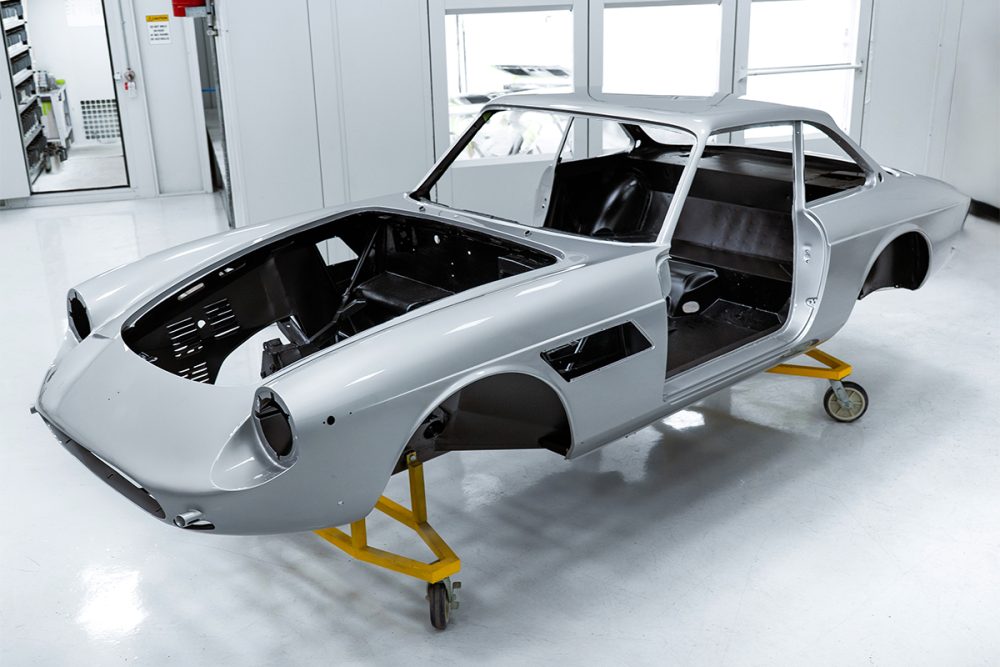 Concours restoration back to original factory livery of Argento 25090A (silver) with Negro Franzi (black) interior.
